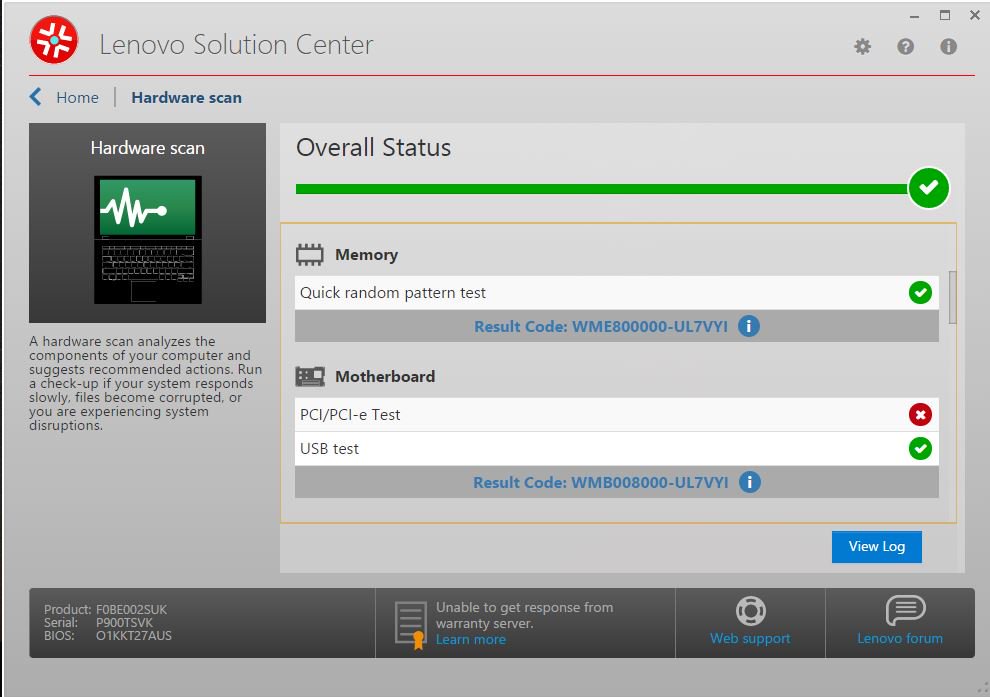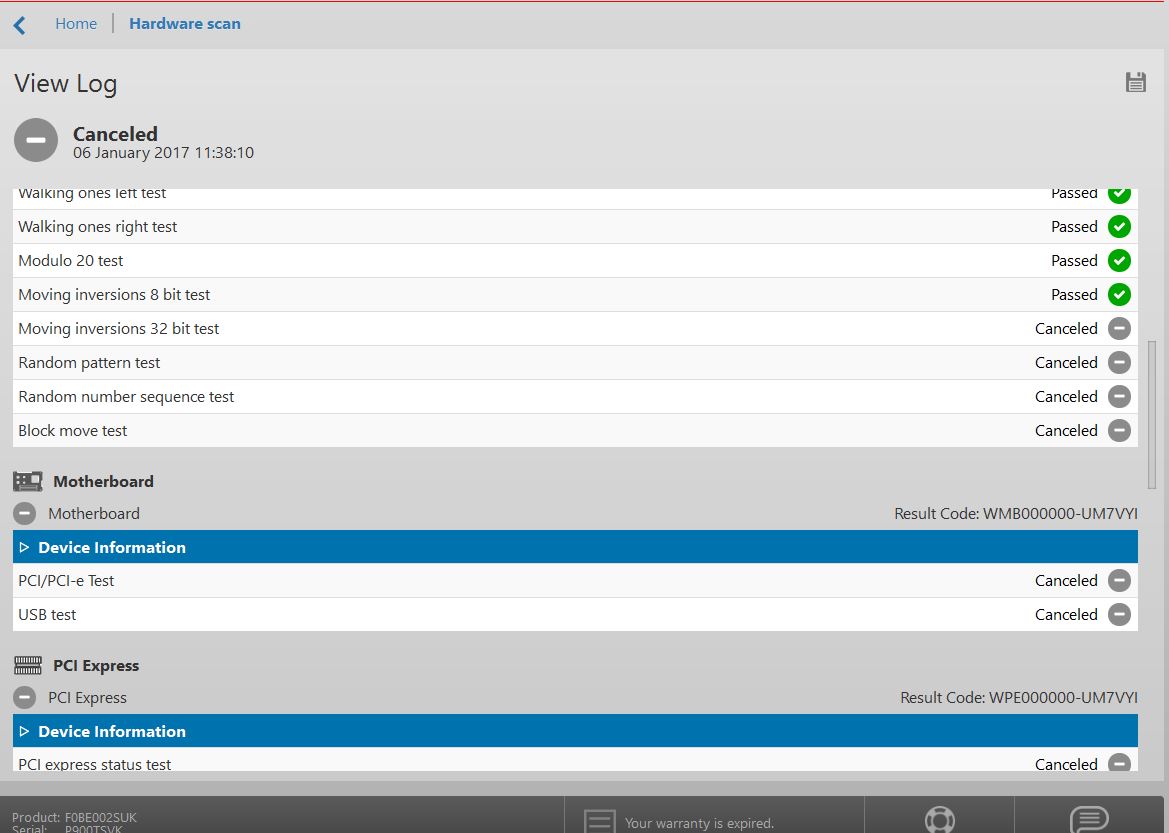 Plus running the companion Hardware test resulted noted an issue. Jan 2016